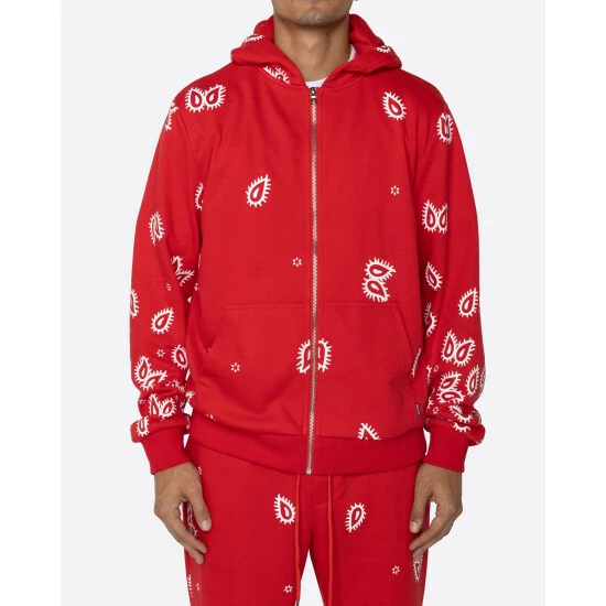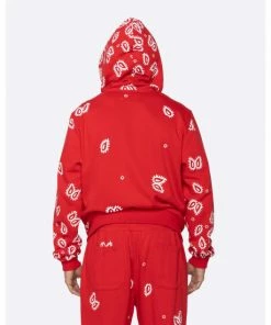 EPTM Amoeba Print Zip Hoodie Sweatshirts, Sweaters & Hoodies Red