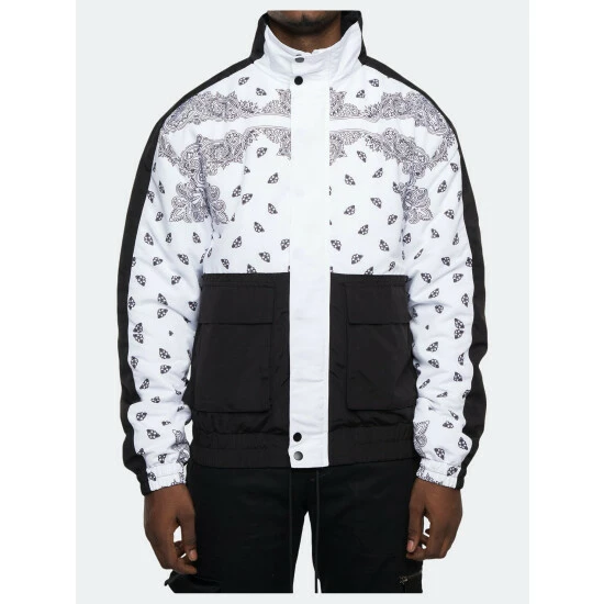– Model is 6′ 150 lbs, and wearing size medium.- Quilted lining inside- Snap button pocket