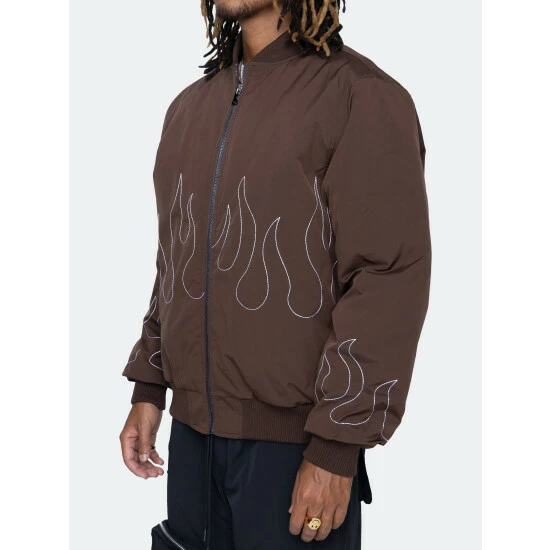 – Hand stitched flame detail- Standard fit- Side seam pockets- Quilted lining inside