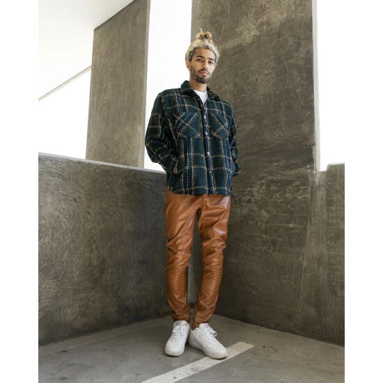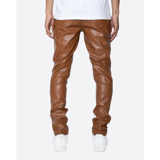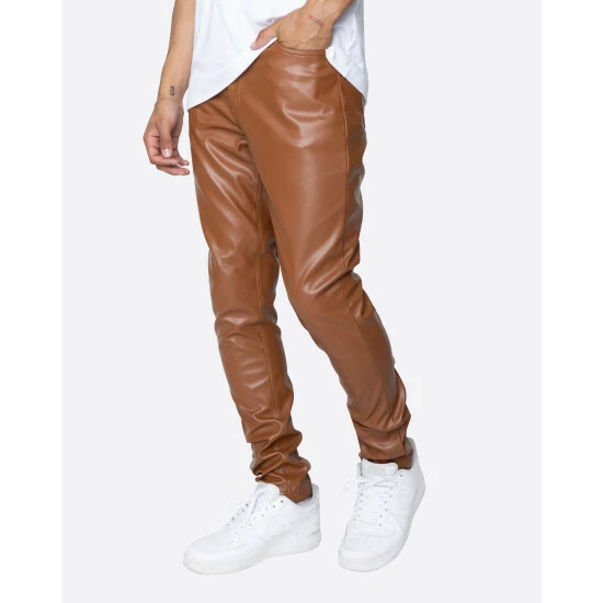 The Faux Leather Essential. A Slim fit pant with a nice stack. Perfect for a night or a casual flex. Classic & Clean – Essential for every closet.