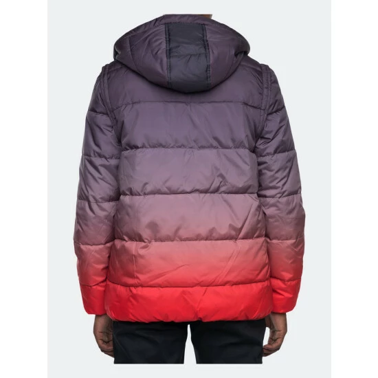 – Model is 6′ 150 lbs, and wearing size medium.- Detachable sleeves- Convert to vest- Detachable hoodie