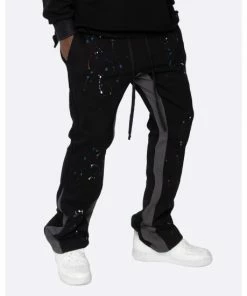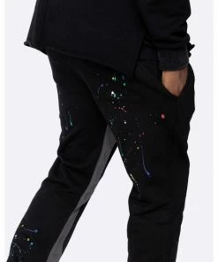 For the rebels. These two-tone sweatpants are made out of 320gsm heavy-weight french terry, featuring a flared ankle with a contrast inseam panel.Inspired by vintage jackson pollock paintings, we went crazy with the paint brush – giving these a custom paint splatter unique to each pair. Made for the rebels and the artists.