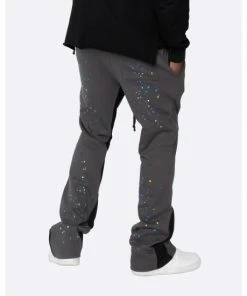 For the rebels. These two-tone sweatpants are made out of 320gsm heavy-weight french terry, featuring a flared ankle with a contrast inseam panel.Inspired by vintage jackson pollock paintings, we went crazy with the paint brush – giving these a custom paint splatter unique to each pair. Made for the rebels and the artists.